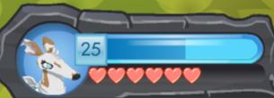 To level up, players must get plenty of Courage Points depending on each level. The player will need more courage points when they are on a higher level and less when they are on a lower level. Every 8th level (8, 16, 24) the player's animal gains another heart for its health bar. Levels 0 to 7 have only three hearts, levels 8 - 15 have four hearts, levels 16 - 23 have five hearts, and level 24 or higher will have six hearts. Every 5th level (5, 10, 15) the animal's level indicator on their name-tag will change shape. Levels 0 to 4 have a circle shape, levels 5 to 9 have a five-pointed star shape, levels 10 to 14 have a diamond shape, and level 15 or higher will have a square shape. The highest level an animal can be is level 30.