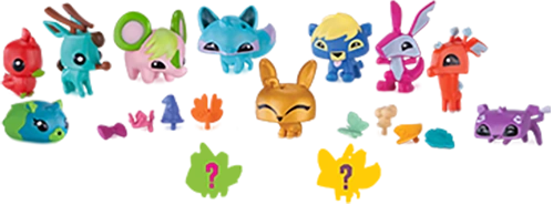 These are animal figures that come with a head item, wings, and a light up ring. When the ring's button is clicked, a light can be shined onto the animal figure and a hidden pattern is revealed. The clothes are removable and fit into small holes on the animal. They cost $8.99 USD (£7.99 GBP).