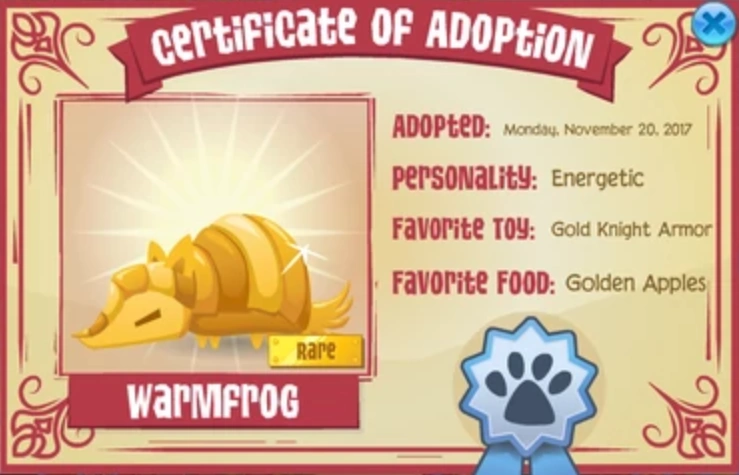 | Pet Seal | Adopting an Ultra Rare Shimmerway from the Adopt a Pet Treasure Chests |