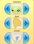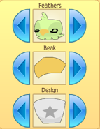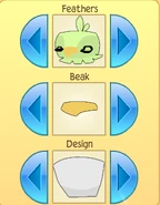 The pet has a wide head, small body, short wings, and tiny talons. It is available in a variety of saturated colors. The following features of the pet can be customized: