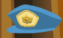 A blue police officer's hat with a gold emblem on the front. Details change to match the chosen pattern.
