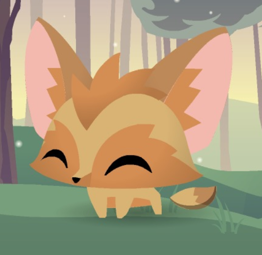 The Pet Fennec Fox has a large semi-circular head with big triangular ears, with lots of fluff inside of them. It also has a bushy tail and four stubby legs, as well as a small nose.