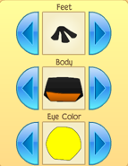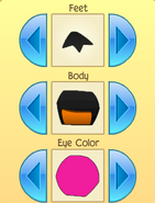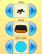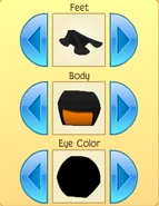Frogs are small and mostly shaped like an oblong hexagon with large and stubby feet that have three toes each with round pads on the tips. They can be customized with four options each of body shape, feet, and eye color. Their body colors can be changed using the standard color palettes, and they have six different eye choices with four different colors. They also have a long dark pink tongue.