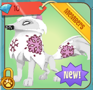 The Snowflake Arctic Wolf appears identical to the Arctic Wolf, but with alternating thick and thin snowflake patterns on its fur. It also has a ring of alternating snowflakes on the ground surrounding it while stationary and it leaves behind a trail of thicker snowflakes while running. Much like the Spring Bunny which was earned with purchase of Membership, there are eight different snowflake colors that can be selected by default.