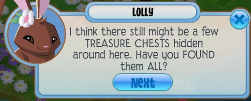 5. After finding all the Eggs Lolly tells the player there are also treasure chests that are scattered around the Adventure.